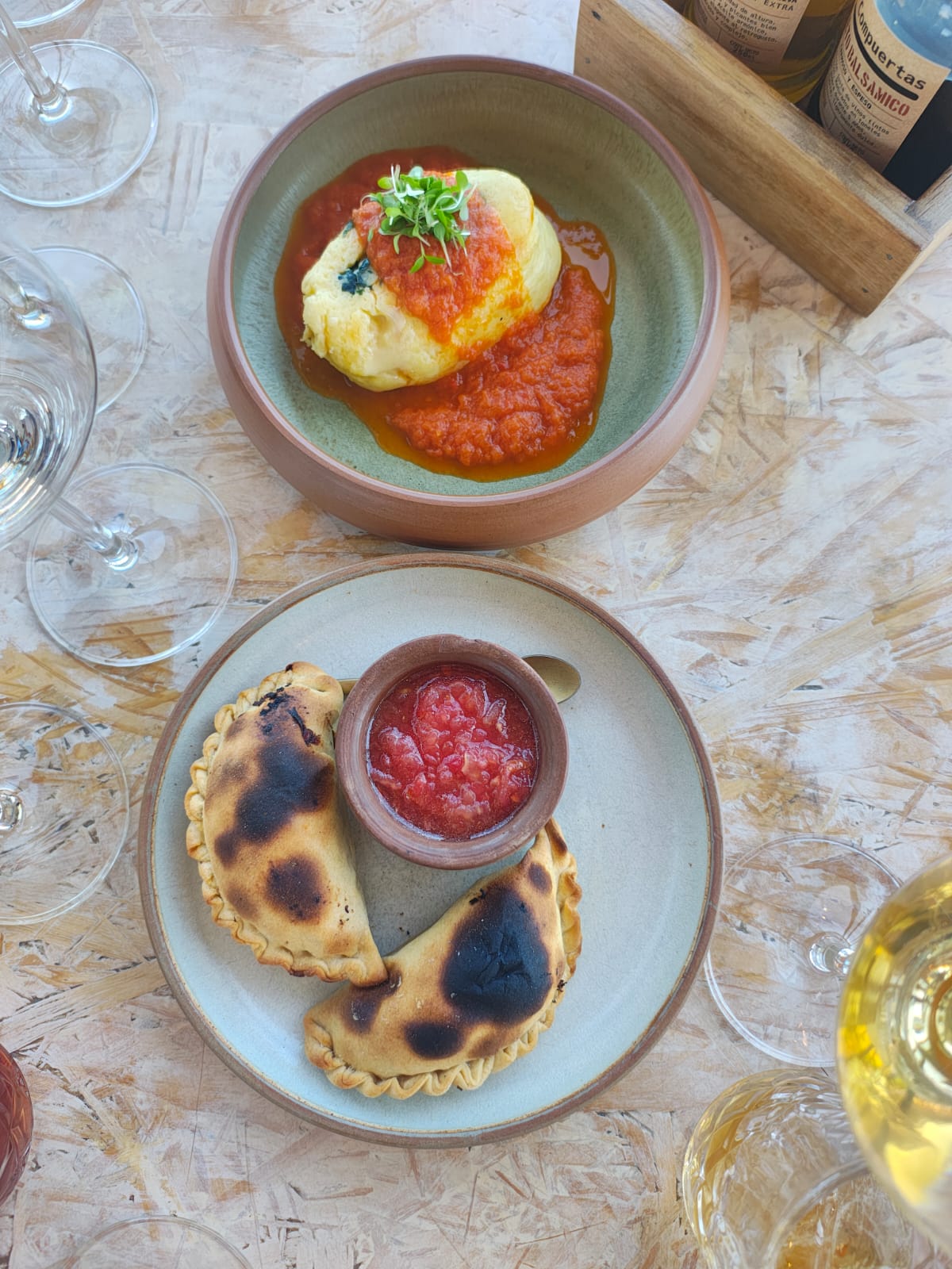 El corazón del menú se basa en la cocina del horno de barro, y parados alrededor de la barra que lo rodea, empezamos a degustar unas pequeñas empanadas, con mucha cebolla y mucha carne. En el lugar también se venden productos de despensa elaborados por la familia Mendoza, el mayor productor de ajos, nos cuenta Patricia Courtois.